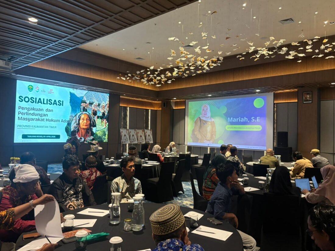 Kegiatan Sosialisasi Pengakuan dan Perlindungan Masyarakat Hukum Adat ini digelar di Hotel Mercure, Tanjung Redeb, Berau, pada Kamis (9/4/2026). Acara ini dihadiri oleh 136 peserta dari komunitas adat di Kabupaten Berau dan Kutai Timur.